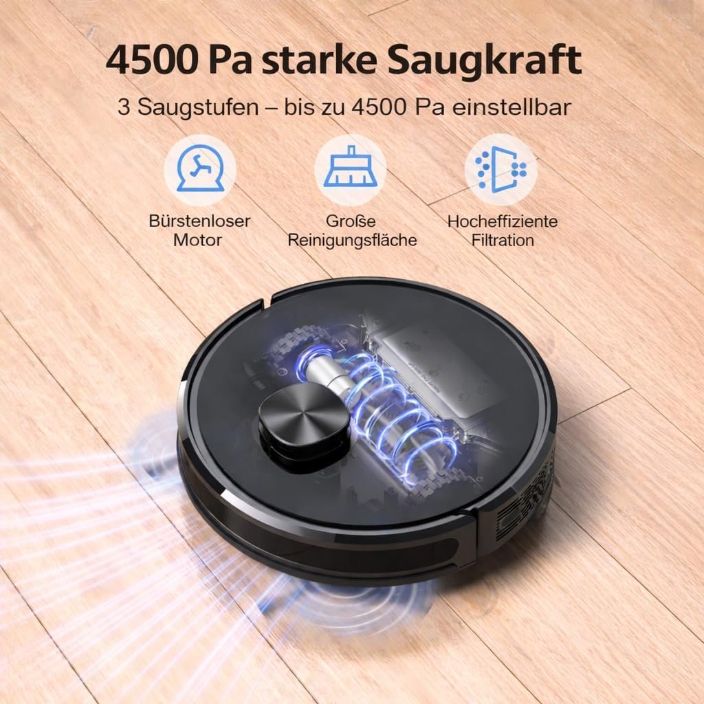 Lubluelu-Staubsaugerroboter mit Wischfunktion, 3000Pa Laser-Navigationsger?t mit 5 Karten, 55 dB, mit App-Steuerung, ideal f??r Tierhaare, Teppiche, Hartb?den
