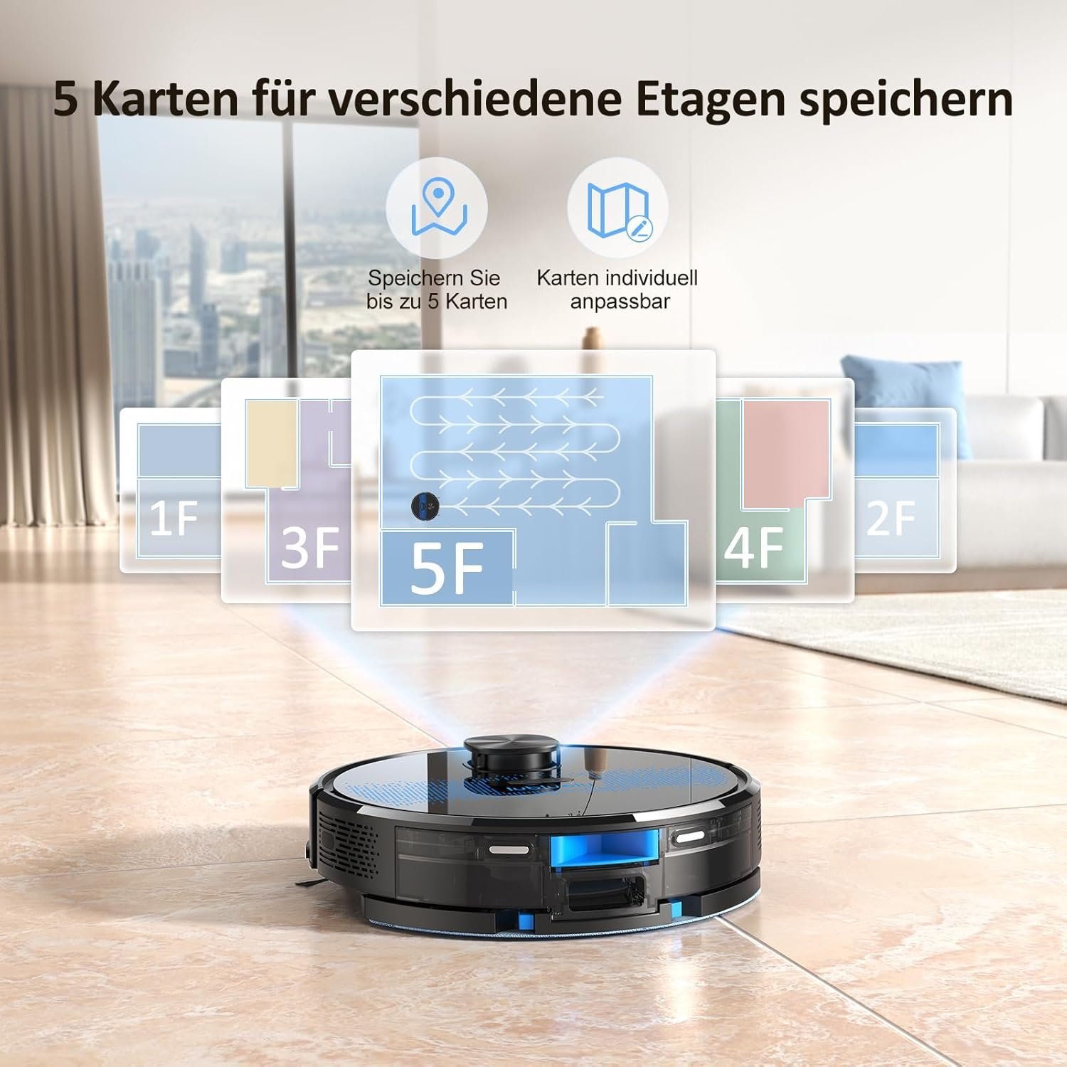 5 gespeicherte Karten sind ein Game-Changer, er kennt jeden Raum und putzt pr?zise!
