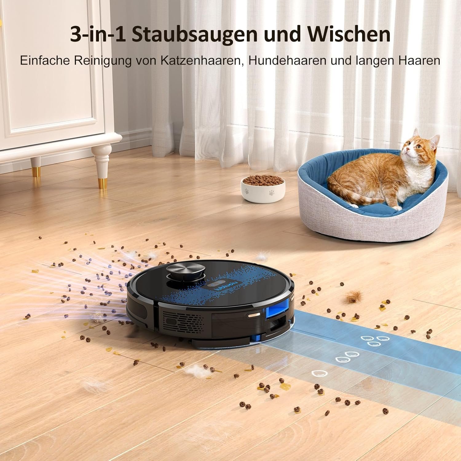 Die 3000Pa Saugkraft saugt jedes Tierhaar und jeden Schmutz gr¨¹ndlich auf, keine Spuren mehr!